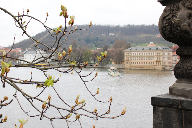 Kulman takana avautuvan vanhankaupungin aukion oli vallannut pääsiäsmarkkinat, pieniä kojuja, herkkujen suloinen tuoksu ja ihmisvilinä. Kiertelin tungosta kaukaa ja hengitin kosteaa ilmaa. Kaupunki oli kolea, mutta vain ulkoa. Kuljin sokkeloita päämääröttömästi, pysähtelin yksityiskohtien äärelle ja nautin omasta seurastani. Sillalla nojauduin kaiteeseen ja hämmennyin siitä, kuinka hyvin kaupungin kulmat alkoivat palautua mieleeni, kaikki tuntui jotenkin kuin kaukaa nähdyltä, kuin unesta ehkä. Taivas antoi alas muutaman pisaran silloin tällöin, mutten paennut niitä sisälle, ei pieni sade minua vahingoittaisi.