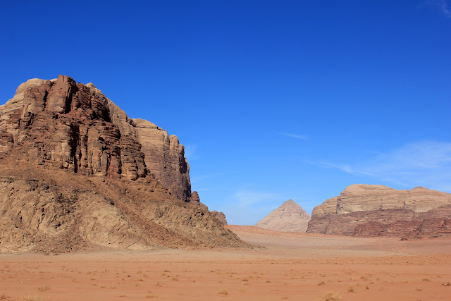 Kuulaaksoksikin kutsutun Wadi Rumin aavikkokaistaleen näkymä avautui jeepin lavalta uskomattoman upeana, hiiskumaton hiljaisuus ja tuulen mukaansa nostattama hieno hiekka ympäröivät. Jylhät kalliot loivat terävät varjot maisemaan ja jeeppi kierteli solia ja nyppylöitä, piirtäen verkkokalvoille toinen toistaan mielenkiintoisempia muotoja ja värejä.